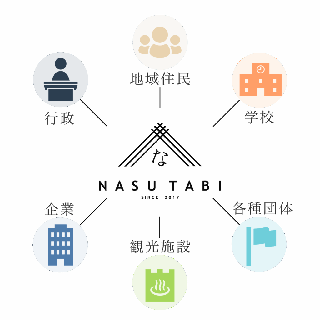 を理念に掲げ、行政、学校、企業、観光施設など多様なステークホルダーと連携することで、